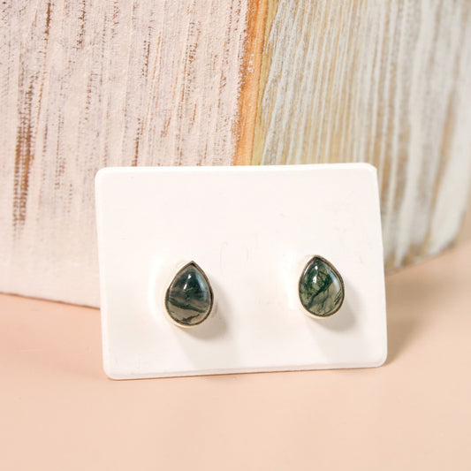 Teardrop Moss Agate Stud Earrings | Love + Lark