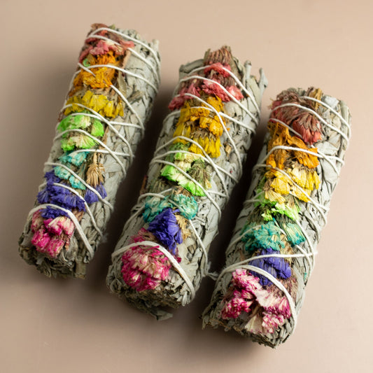 Sage + Chakra Flowers Smudge Stick - 4"